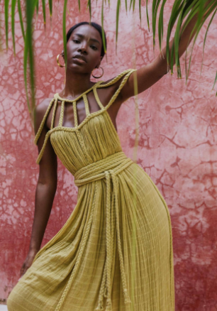 Avery - Robe longue en lin moderne et sophistiquée avec tresses drapées
