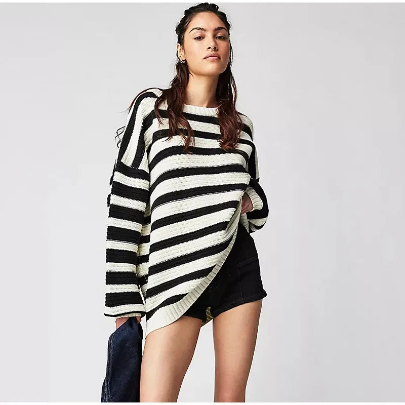 Madeleine - Pull à Rayures Imprimées à Manches Longues
