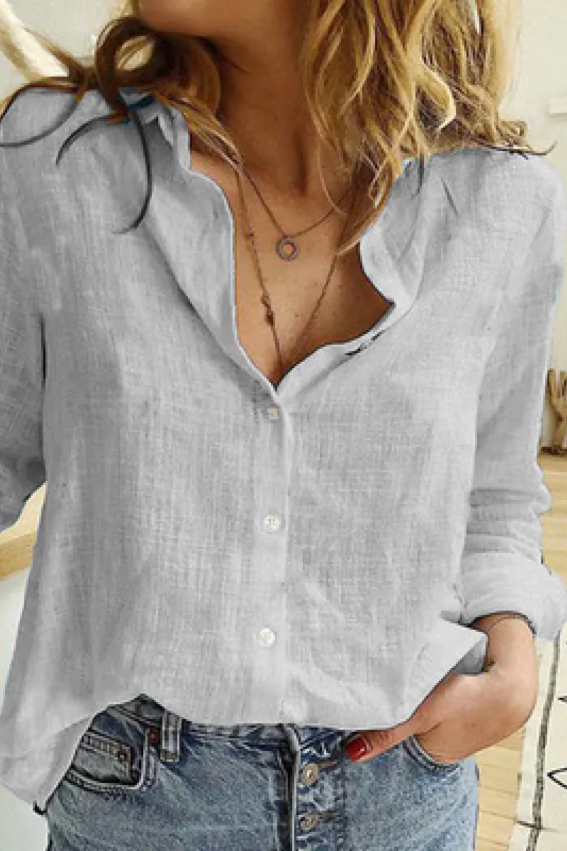 Ses manches longues et sa coupe fluide en font un incontournable de la garde-robe, idéal aussi bien pour le bureau que pour une sortie décontractée. Facile à associer avec un jean, un short ou une jupe, ce haut vous accompagne avec élégance en toute saison.